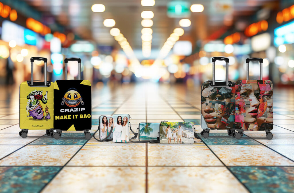 At Crazip, we believe travel and style should go hand in hand—without compromising the environment. That’s why we specialize in custom-made bags and custom carry-on luggage crafted from lightweight, resistant recycled plastic (PET) and polyester. Each piece is 100% customizable with a distinct image on both sides, allowing you to showcase your personality in a truly unique way.